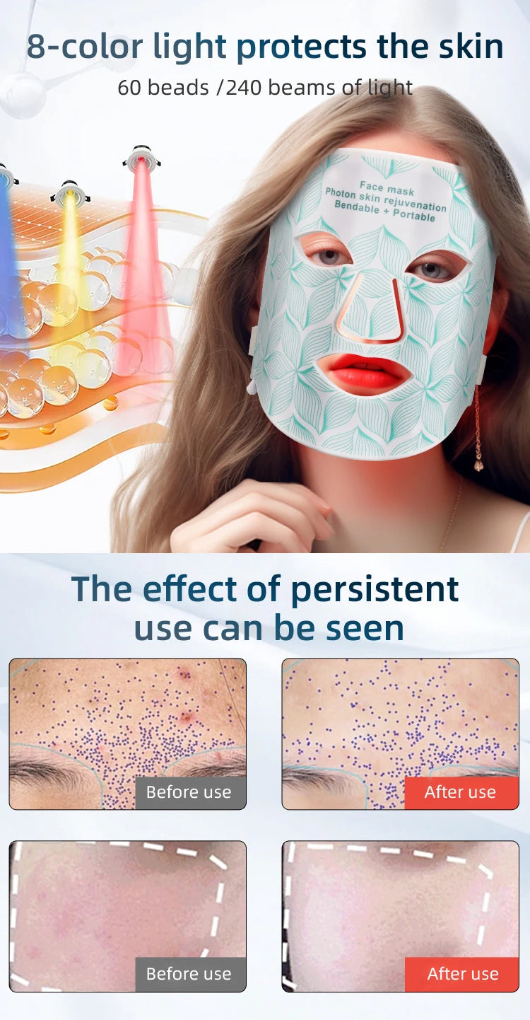 Our mask delivers targeted 633 nm red light and 830 nm near-infrared therapy to stimulate collagen, smooth wrinkles, and improve firmness. The flexible design ensures full-face coverage and comfort for hands-free use.